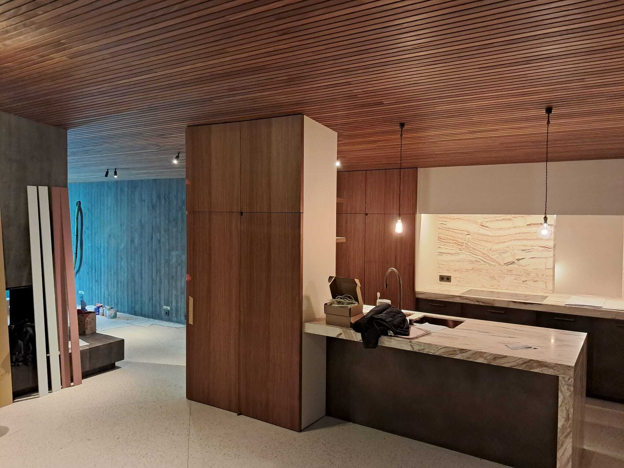 Bekijk hier de referentie van een privéwoning waar ons Linup systeem werd gebruikt voor de bekleding van een houten plafond.